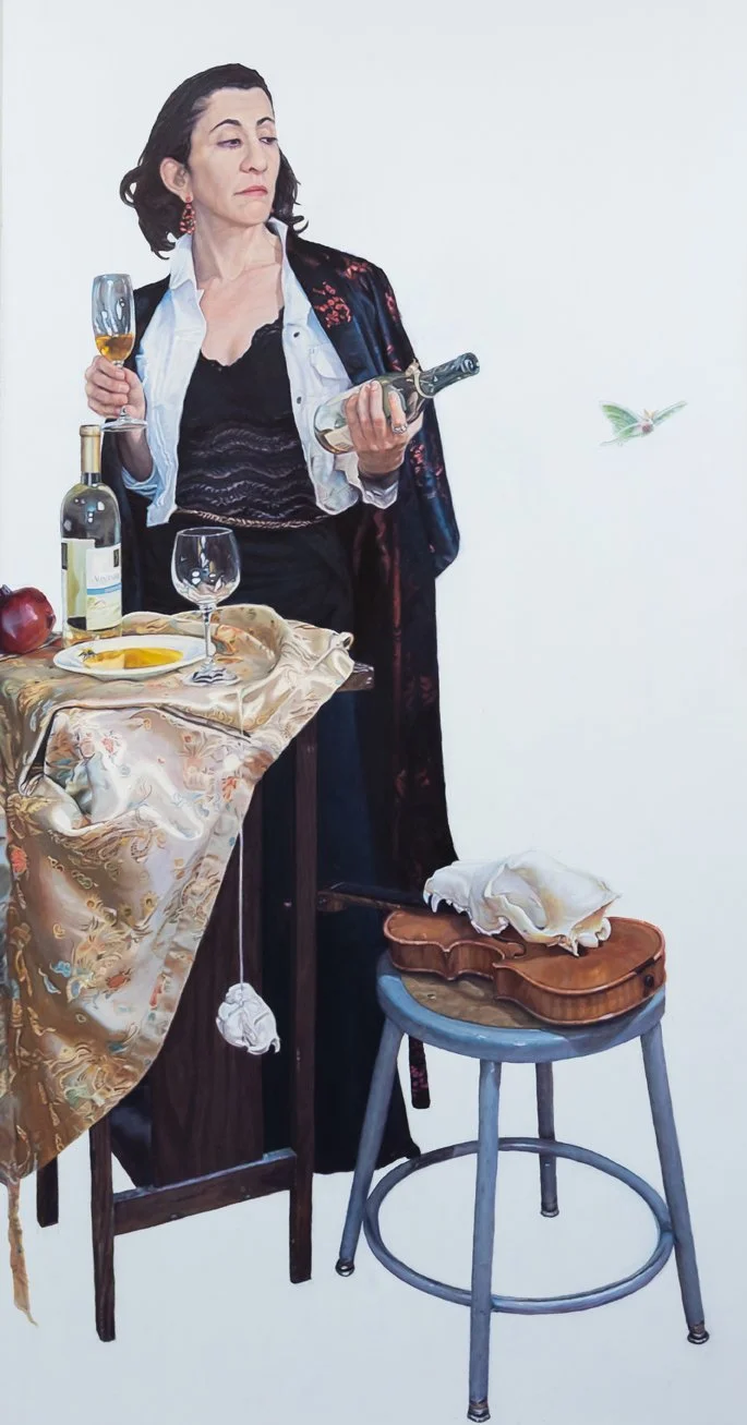 “Self Portrait as a Fluoroquinolone Induced Cripple, My Body Was Violated, My Trust Betrayed" Oil on Hardboard, 56"x36", 2022.